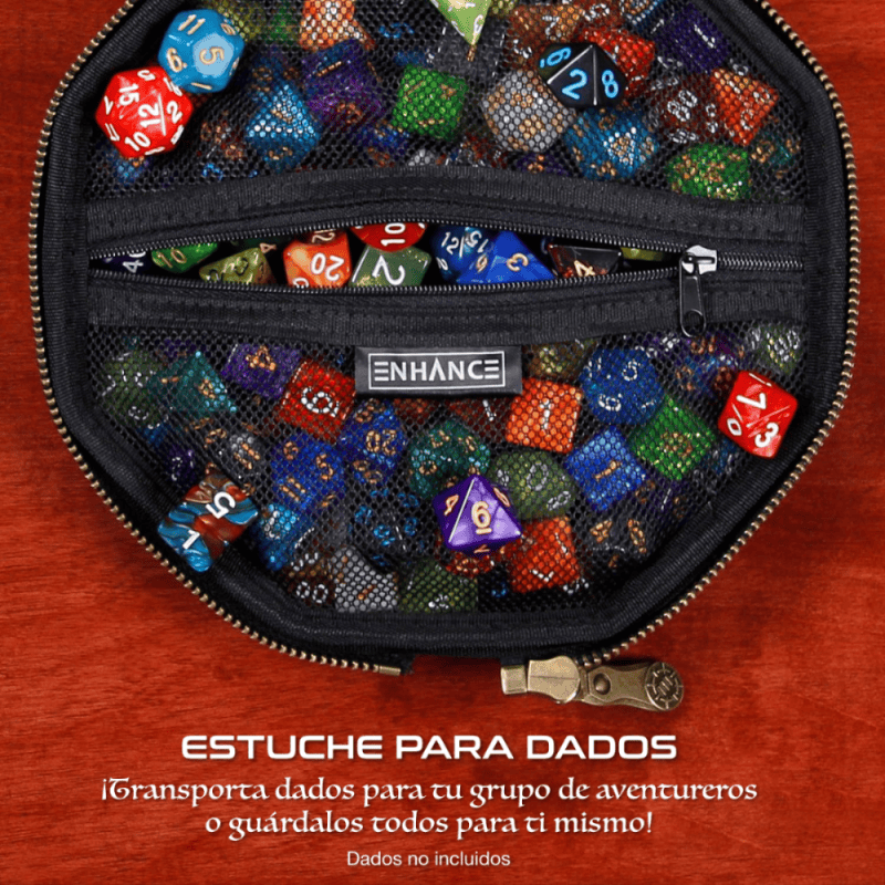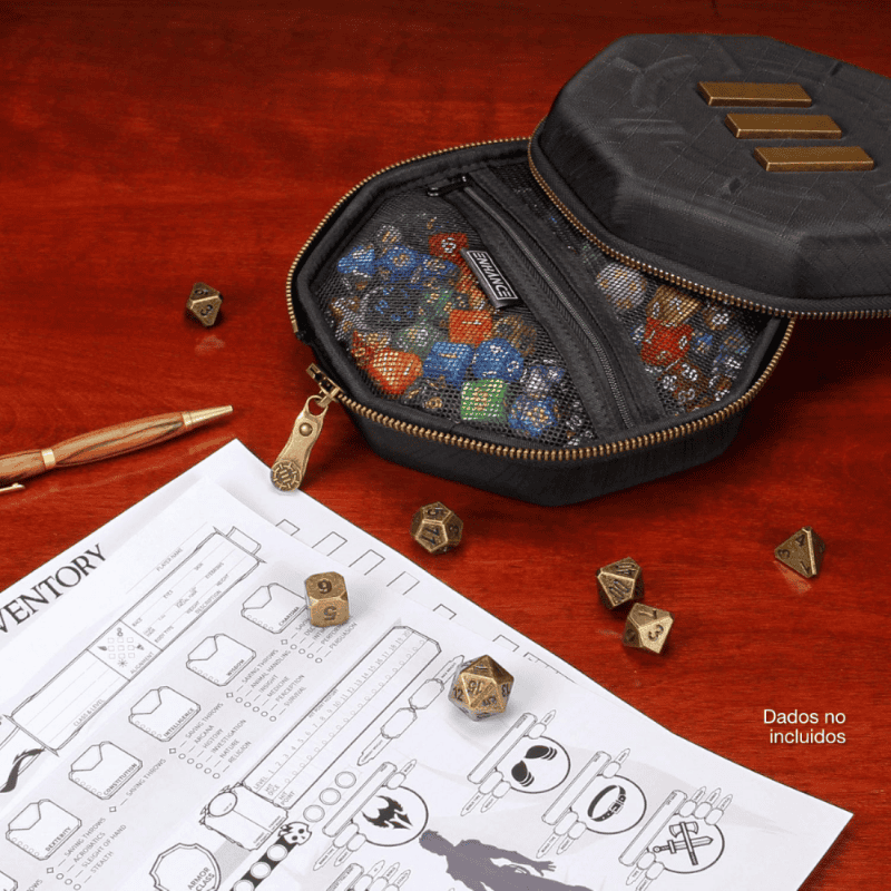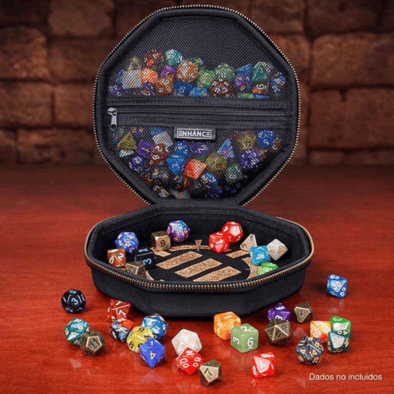 Estuche y Bandeja para Dados 2 en 1: una funda rígida reforzada con un diseño de cierre resistente mantiene ambos lados de la funda juntos, pero se desmonta fácilmente para un uso cómodo en la mesa.